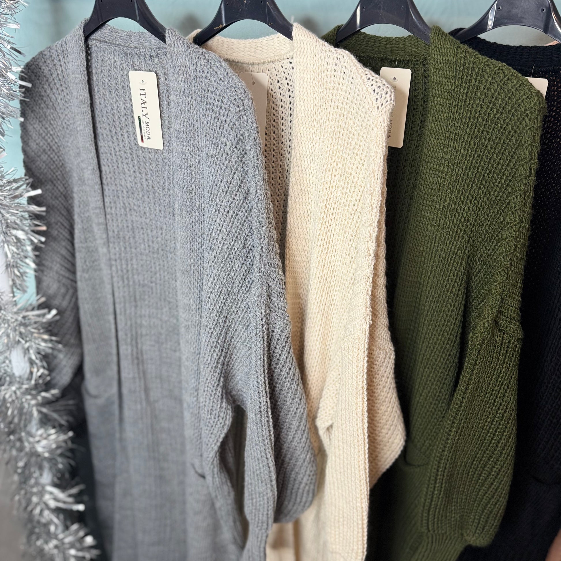Perla - Longline Balloon Sleeve Cardigan With Pockets - Womenswear Knitwear.